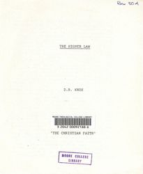 Knox, D. B. (David Broughton) (1916-1994). The Higher Law. . 1978. Retrieved from the Atla Digital Library, https://archives.moore.edu.au/documents/detail/7473.