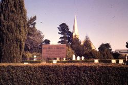 Thurling, John. St John's Canberra Exterior - From East - with Notice Board 14/3/61. Church of England Historical Society (Diocese of Sydney). 1961. Retrieved from the Atla Digital Library, https://archives.moore.edu.au/documents/detail/111719.