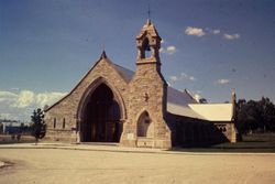 Thurling, John. All Saints' Ainslie Exterior From Drive Entrance 15/3/61. Church of England Historical Society (Diocese of Sydney). 1961. Retrieved from the Atla Digital Library, https://archives.moore.edu.au/documents/detail/111790.