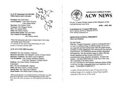 Church Women, Australian.Acw News 2003 6 June. Australian Church Women. 2003. Retrieved from the Atla Digital Library, https://archives.moore.edu.au/documents/detail/148281.