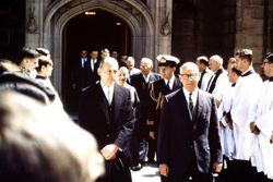 Thurling, J. (1962). St Andrew's Cathedral, after Apprenticeship service, Lt Gen Woodward (NSW Gov) on left, 23/9/62. Retrieved from the Atla Digital Library, https://archives.moore.edu.au/documents/detail/119267.