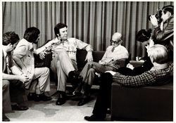 Caption: Evangelist Bill Glass attracted much attention by the press concerning his prison ministry in the USA upon his arrival in Sydney. Bill Glass spoke at several area meetings before moving on to Wagga Wagga for his city wide crusade.