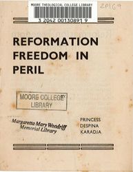 Karadja, M.Reformation freedom in peril / by Princess Despina Karadja. Retrieved from the Atla Digital Library, https://archives.moore.edu.au/documents/detail/129699.
