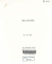 Knox, D. (1972). What is the gospel?. Retrieved from the Atla Digital Library, https://archives.moore.edu.au/documents/detail/9146.