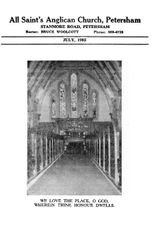 All Saints' Church (Petersham, N.S.W.).The Chronicle of the Parish All Saints' Petersham 1985 July. All Saints' Church (Petersham, N.S.W.). 1985. Retrieved from the Atla Digital Library, https://archives.moore.edu.au/documents/detail/94034.