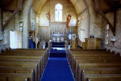 Thurling, John.St Faith's Narrabeen, Interior, 22/8/64. Church of England Historical Society (Diocese of Sydney). 1964. Retrieved from the Atla Digital Library, https://archives.moore.edu.au/documents/detail/119857.