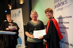 Certificate of Achievement : Pastoral Care course CD label reads : "Graduation 2014 Mary Andrews College" [Thanksgiving, Graduation and Commissioning 2014]