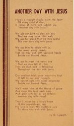 Lysaght, Ivy G.Another Day with Jesus / Ivy G. Lysaught. Retrieved from the Atla Digital Library, https://archives.moore.edu.au/documents/detail/129998.