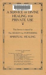 (1940). A service of divine healing for private use: This service is issued / by the society for furthering spiritual healing. Retrieved from the Atla Digital Library, https://images.quartexcollections.com/moore/thumbnails/preview/2fac31e6-ade7-4564-bbae-c29e0100b4f5.