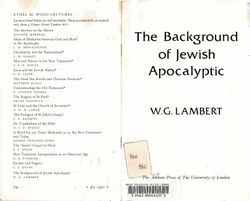 Lambert, W. G. (Wilfred G.). The Background of Jewish Apocalyptic / W.g.lambert. London : Athlone Press.. 1978. Retrieved from the Atla Digital Library, https://images.quartexcollections.com/moore/thumbnails/preview/4d8c18c1-11e4-4dae-93ee-37ff31e56e29.