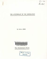 Knox, D. (1971). The anniversary of the Reformation. Retrieved from the Atla Digital Library, https://archives.moore.edu.au/documents/detail/9302.