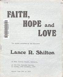 Shilton, Lancelot Rupert (1921-1998). Faith, Hope and Love / by Lance R. Shilton. Adelaide : Trinity Publishing Society.. 1973. Retrieved from the Atla Digital Library, https://archives.moore.edu.au/documents/detail/133195.