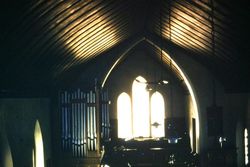 Bates, Joan. Christ Church Kiama, Interior Showing Rowing Boat Roof. Church of England Historical Society (Diocese of Sydney). Retrieved from the Atla Digital Library, https://archives.moore.edu.au/documents/detail/110446.
