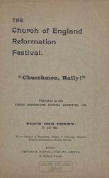 Reformation Festival Committee, Sydney.The Church of England Reformation Festival - 'churchmen, Rally!'. Hennessey, Harper & Company, Limited. 1898. Retrieved from the Atla Digital Library, https://archives.moore.edu.au/documents/detail/21221.