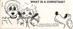 De Plater, Paul C. What Is a Christian? /written by Paul. C. De Plater Drawings by Rosaleen Edwards. Engadine, N.S.W.: [Paul C.Plater].. 1978. Retrieved from the Atla Digital Library, https://archives.moore.edu.au/documents/detail/127191.