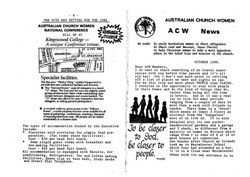 Church Women, Australian.Acw News 1988 10 October. Australian Church Women. 1988. Retrieved from the Atla Digital Library, https://archives.moore.edu.au/documents/detail/147855.