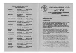 Church Women, Australian.Acw News 1997 9 September. Australian Church Women. 1997. Retrieved from the Atla Digital Library, https://archives.moore.edu.au/documents/detail/148225.