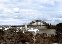 Cash, Edward Francis Nicholson (1887-1964).View of Completed Bridge From Christ Church Rectory, Lavender Bay. 1935. Retrieved from the Atla Digital Library, https://archives.moore.edu.au/documents/detail/134562.