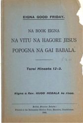 of England, Church. Na Book Eigna Na Vitu Na Hagore Jesus Popogna Na Gai Babala : Tarai Hinaota 12-3 / Nigna a Hugo Hebala Ke Risoa. Melanesian Mission Press. 1940. Retrieved from the Atla Digital Library, https://archives.moore.edu.au/documents/detail/18288.