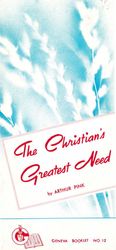 Pink, Arthur Walkington (1886-1952).The Christian's Greatest Need / by Arthur Pink. Latrobe, Tasmania : Geneva Press.. Retrieved from the Atla Digital Library, https://archives.moore.edu.au/documents/detail/27295.