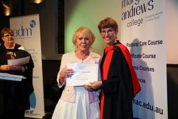 Certificate of Achievement : Pastoral Care course CD label reads : "Graduation 2014 Mary Andrews College" [Thanksgiving, Graduation and Commissioning 2014]