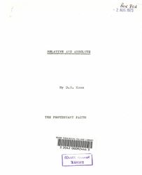 Knox, D. (1973). Relative and absolute. Retrieved from the Atla Digital Library, https://archives.moore.edu.au/documents/detail/9284.