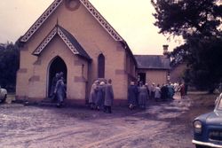Thurling, J. (1962). Christ Church Rouse Hill, exterior showing touring party on way to morning tea in hall, 11/8/62. Retrieved from the Atla Digital Library, https://archives.moore.edu.au/documents/detail/119115.