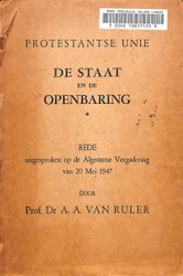 Ruler, Arnold Albert van (1908-1970). De Staat En De Openbaring : Rede Uitgesproken Op De Algemene Vergadering Van 20 Mei 1947. . 1947. Retrieved from the Atla Digital Library, https://archives.moore.edu.au/documents/detail/273550.