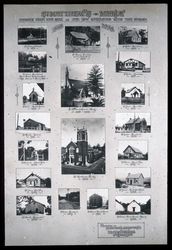 St Matthew's Manly - collage of nineteen photographs of churches which have been or are now connected with the parish, 1863-1938. St John's Pittwater 1871; St Mary's Brooklyn (formerly Peat's Ferry) 1895; St Faith's Narabeen 1897; St John's Bar Island 1876, attached to Manly 1895; St Paul's Middle Harbour 1911; St Luke's Brookvale 1925; St Mark's Harbord 1911; St Andrew's Oxford Falls 1926; St Peter's Manly Vale 1927; St John's Dee Why 1922; St James' South Curl Curl 1928; All Saints' Balgowlah 1925; St Alban's Frenchs Forest 1918; St Philip's Pacific Parade Manly, 1938. Presented to St Matthew's Church Manly, Mr and Mrs P.W. Gledhill, 8th November 1938. Digitised from a glass lantern slide.