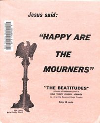 Prentice, Hugh K. (Hugh Kenneth).Jesus Said: "happy Are the Mourners" / the Reverend Hugh Prentice. Adelaide : Trinity Publishing Society.. Retrieved from the Atla Digital Library, https://archives.moore.edu.au/documents/detail/209367.