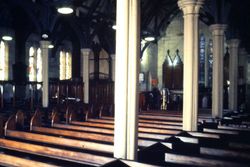 Thurling, J. (1961). St Peter's East Sydney, interior from right of west entrance, 16/4/61. Retrieved from the Atla Digital Library, https://archives.moore.edu.au/documents/detail/107606.