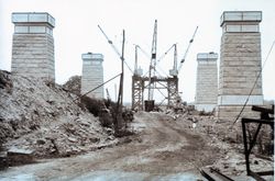 Cash, Edward Francis Nicholson (1887-1964). Granite Pillars for Approach Spans, and Wooden Towers From Which the Pylons Were Built. Retrieved from the Atla Digital Library, https://archives.moore.edu.au/documents/detail/134553.
