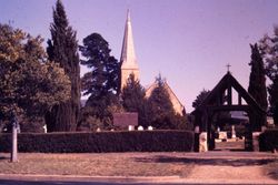 Thurling, John.St John's Canberra Exterior with East Lych Gate 14/3/61. Church of England Historical Society (Diocese of Sydney). 1961. Retrieved from the Atla Digital Library, https://archives.moore.edu.au/documents/detail/111748.