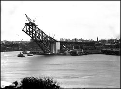 Cash, E. (1930). Sydney Harbour Bridge - growth of main arch - 8 panels on south side with Walsh Bay, from Rectory. Retrieved from the Atla Digital Library, https://archives.moore.edu.au/documents/detail/134708.