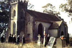 Thurling, John.St Mary the Virgin, Denham Court, Exterior From Rectory Side, 18/6/60. Church of England Historical Society (Diocese of Sydney). 1960. Retrieved from the Atla Digital Library, https://archives.moore.edu.au/documents/detail/111324.