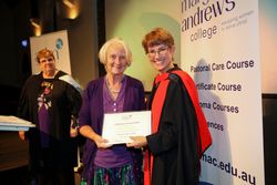 Certificate of Achievement : Pastoral Care course CD label reads : "Graduation 2014 Mary Andrews College" [Thanksgiving, Graduation and Commissioning 2014]