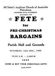 All Saints' Church (Petersham, N.S.W.).The Chronicle of the Parish All Saints' Petersham 1986 November. All Saints' Church (Petersham, N.S.W.). 1986. Retrieved from the Atla Digital Library, https://archives.moore.edu.au/documents/detail/94081.