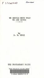 Knox, D. B. (David Broughton) (1916-1994).We Should Know That We Are Saved. 1966. Retrieved from the Atla Digital Library, https://archives.moore.edu.au/documents/detail/9368.