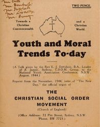 Davidson, E. J.Youth and Moral Trends Today/ Atalk Given by E.j. Davidson. Sydney : Christian Social Order Movement.. Retrieved from the Atla Digital Library, https://archives.moore.edu.au/documents/detail/127181.