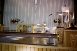 Thurling, J. (1964). St Mark's West Wollongong, font, pulpit and sanctuary, 23/5/64. Retrieved from the Atla Digital Library, https://archives.moore.edu.au/documents/detail/119802.