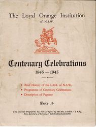 Orange Institution (N.S.W.), Loyal.Centenary Loyal Orange Institution Pageant Programme. 1945. Retrieved from the Atla Digital Library, https://archives.moore.edu.au/documents/detail/266542.