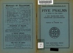 Snaith, Norman Henry (1898-1982). Five Psalms (i, Xxvii, Li, Cviii, Xxxiv) : a New Translation with Commentary and Questionary / by Norman H.snaith. London : The Epworth Press.. 1938. Retrieved from the Atla Digital Library, https://archives.moore.edu.au/documents/detail/27445.