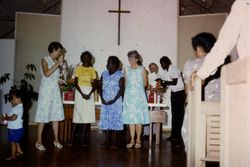 Society Australia, B. (1985). 170. Nov. 17 1985 Service of Dedication Gumatj New Testament Yirrkala Uniting Church. L to R: Joyce Ross, Mutilnga, Gulumbu and Felicity Field. Retrieved from the Atla Digital Library, https://archives.moore.edu.au/documents/detail/135223.