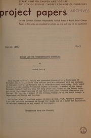 Department on church and society, Division of studies, World Council of Churches.Project Papers On the Common Christian Responsibility Toward Areas of Rapid Social Change No 3, 15 May 1956. 1956. Retrieved from the Atla Digital Library, .