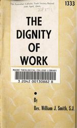 Smith, William J. The Dignity of Work / by the Rev. William J. Smith. Melbourne: The Australian Catholic Truth Society.. 1980. Retrieved from the Atla Digital Library, https://archives.moore.edu.au/documents/detail/133275.