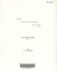 Knox, D. (1963). The Bible alone. Retrieved from the Atla Digital Library, https://archives.moore.edu.au/documents/detail/9322.