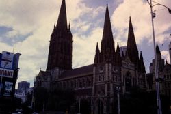 Thurling, J. (1979). St Paul's Cathedral Melbourne 26-2-79 From Flinder St Station. Retrieved from the Atla Digital Library, https://archives.moore.edu.au/documents/detail/120842.