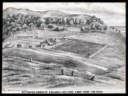 Gledhill, P.Pittwater Church of England & Bolton's farm from the road. Retrieved from the Atla Digital Library, https://archives.moore.edu.au/documents/detail/26707.
