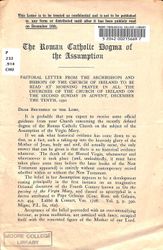 of Ireland - House of Bishops, Church. The Roman Catholic Dogma of the Assumption: Pastoral Letter From the Archbishops and Bishops of the Church of Ireland to Be Read At Morning Prayer In All the Churches of the Church of Ireland On the Second Sunday In Advent, December the Tenth, 1950. Dublin : House of Bishops. 1950. Retrieved from the Atla Digital Library, https://archives.moore.edu.au/documents/detail/269121.