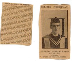 Elizabeth Taylor was Stephen Taylor's daughter. This letter to Moore College lecturer and librarian Noel Pollard describes Everard Digges Latouche, Moore College lecturer who was killed at Gallipoli in 1915.